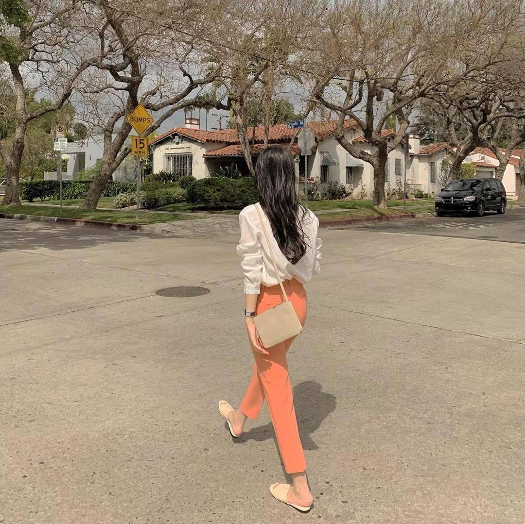 万能百搭的白衬衫与彩色奶奶裤真的是绝配的组合,你完全不用担心选错颜色款式显胖~