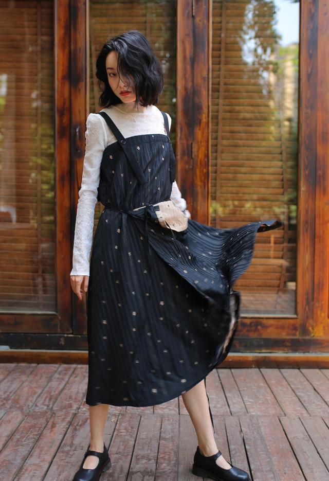 还有少部分人会觉得吊带裙太过于暴露,不适合穿出门。如果你也有这样的想法的话,可以尝试一下吊带裙和网纱打底的搭配。
