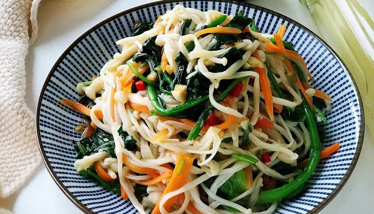 配料表:菠菜、胡萝卜、金针菇、大蒜、辣椒小米、香菜