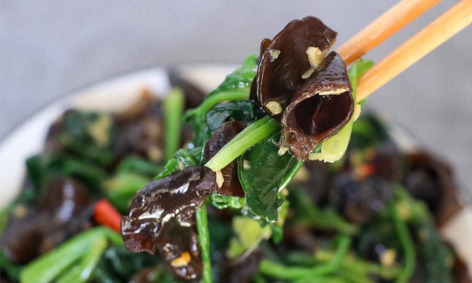 配料表:黑木耳、菠菜、大蒜、姜、小米椒、食用油、酱油、蚝油、盐、糖、香醋