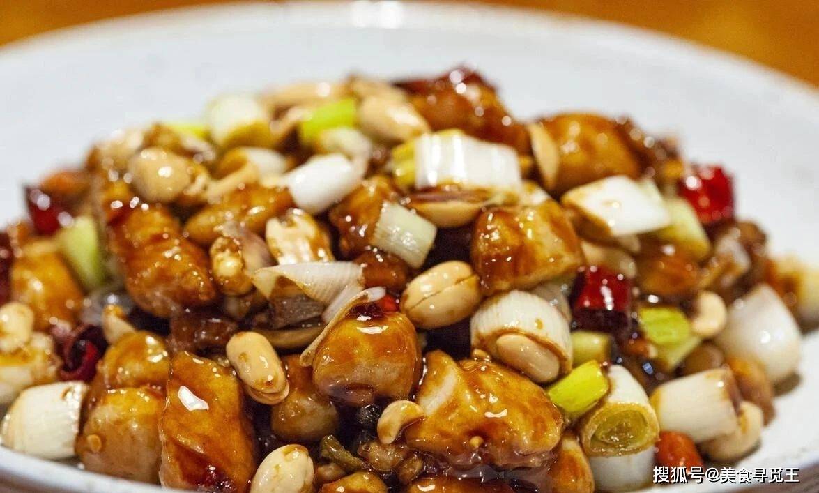 【食材】:鸡胸肉、油炸花生米、大葱、黄瓜、胡萝卜、葱姜蒜 【制作步骤】: 1、鸡胸肉洗净后擦开水分,改刀切成四方小块;放入碗中加盐、料酒、生抽蛋清,生粉,抓拌均匀腌制10分钟;大葱切段;黄瓜和胡萝卜切成四方小丁备用; 2、热油锅,将鸡胸肉过油炸至变色后捞出;自然放凉二次复炸表面金黄控油备用; 3、准备小碗:加生抽、料酒、蚝油、陈醋一点、白糖提鲜、食盐,一勺生粉,2勺清水,搅拌均匀备用;