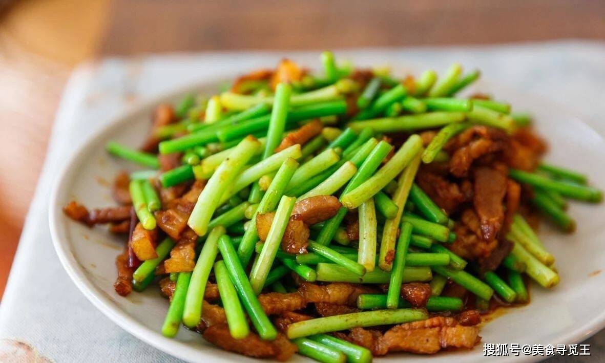 【食材】:蒜薹、肉丝、食盐、生抽、蚝油 【制作步骤】: 1、蒜薹去掉尾部,洗净后切成3厘米左右的小段,里脊肉切成肉丝备用; 2、热油锅,先下入肉丝炒至表面稍微变色,下辣椒和姜片翻炒几下,下入蒜薹开始翻炒;不要等肉全熟后再下蒜薹; 3、加食盐,生抽、蚝油翻炒至蒜薹轻微断生,这个时候肉丝基本也就熟了,关火前加几滴香油,翻拌均匀,就可以出锅了; 蒜薹一般不好入味,所以在之前可以切好后先用盐腌一会,既可以更好的入味,也可以杀杀水分;蒜薹在炒的时候,最后保留一些生的口感,如果完全炒软,就没有蒜薹独有的辣味了;