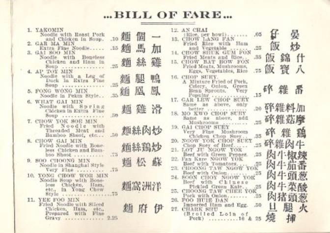 旧时的披露街,同样以餐馆为主,图中的杂碎馆(Chop Suey)百年前很风行。(中华公所历史图片)