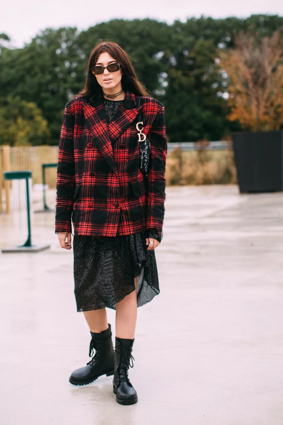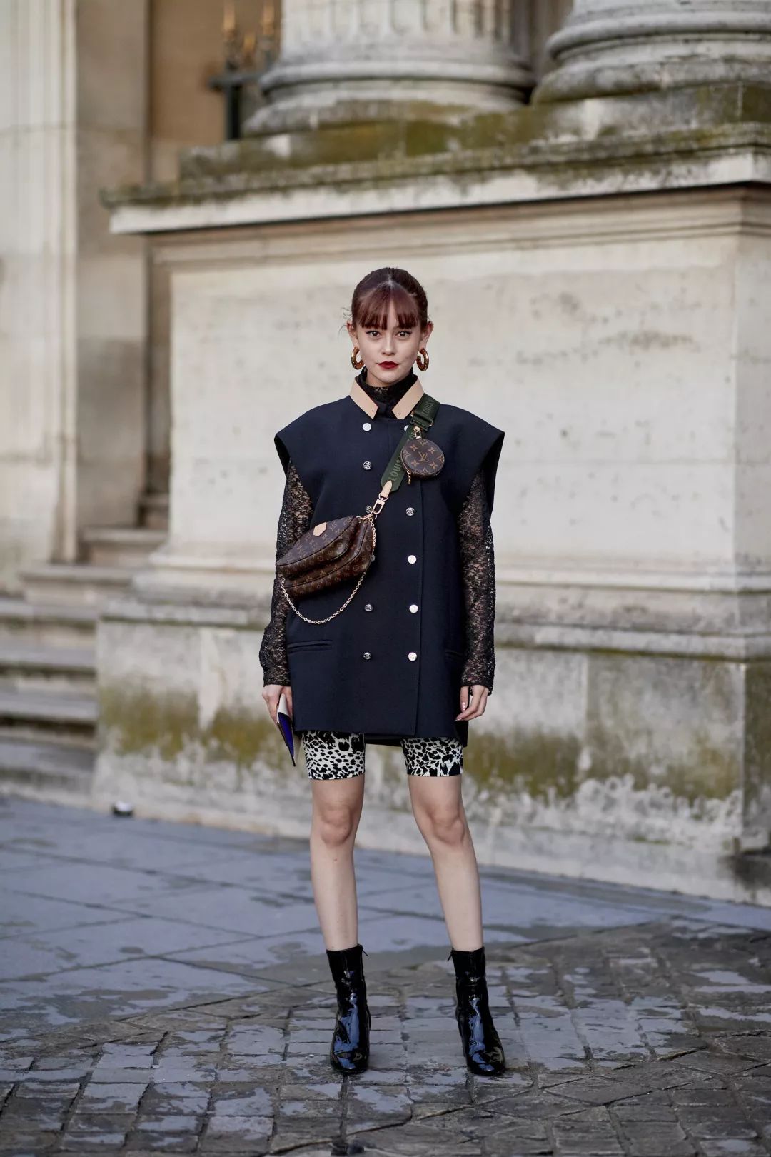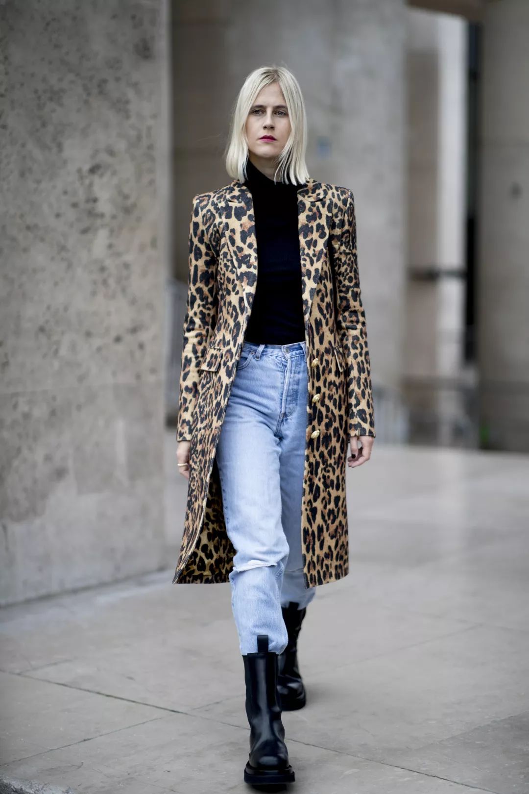 搭配直筒大佬裤,裤脚盖住一部分靴面,气场全开。
