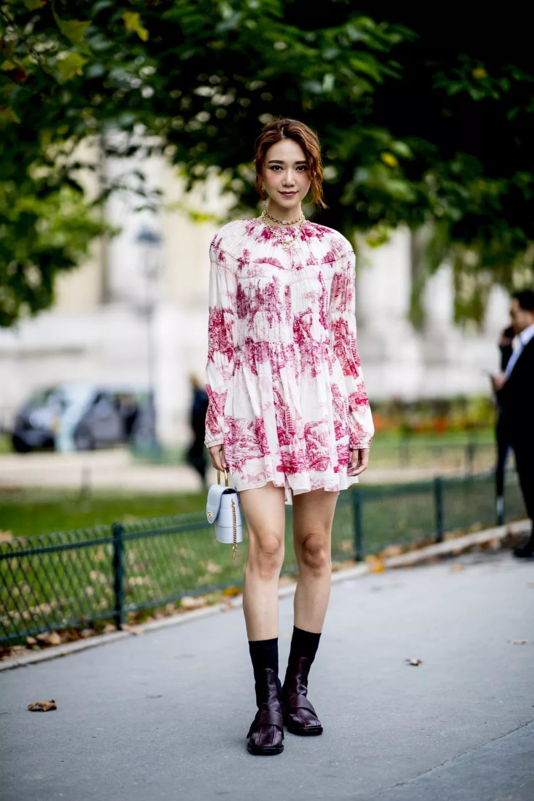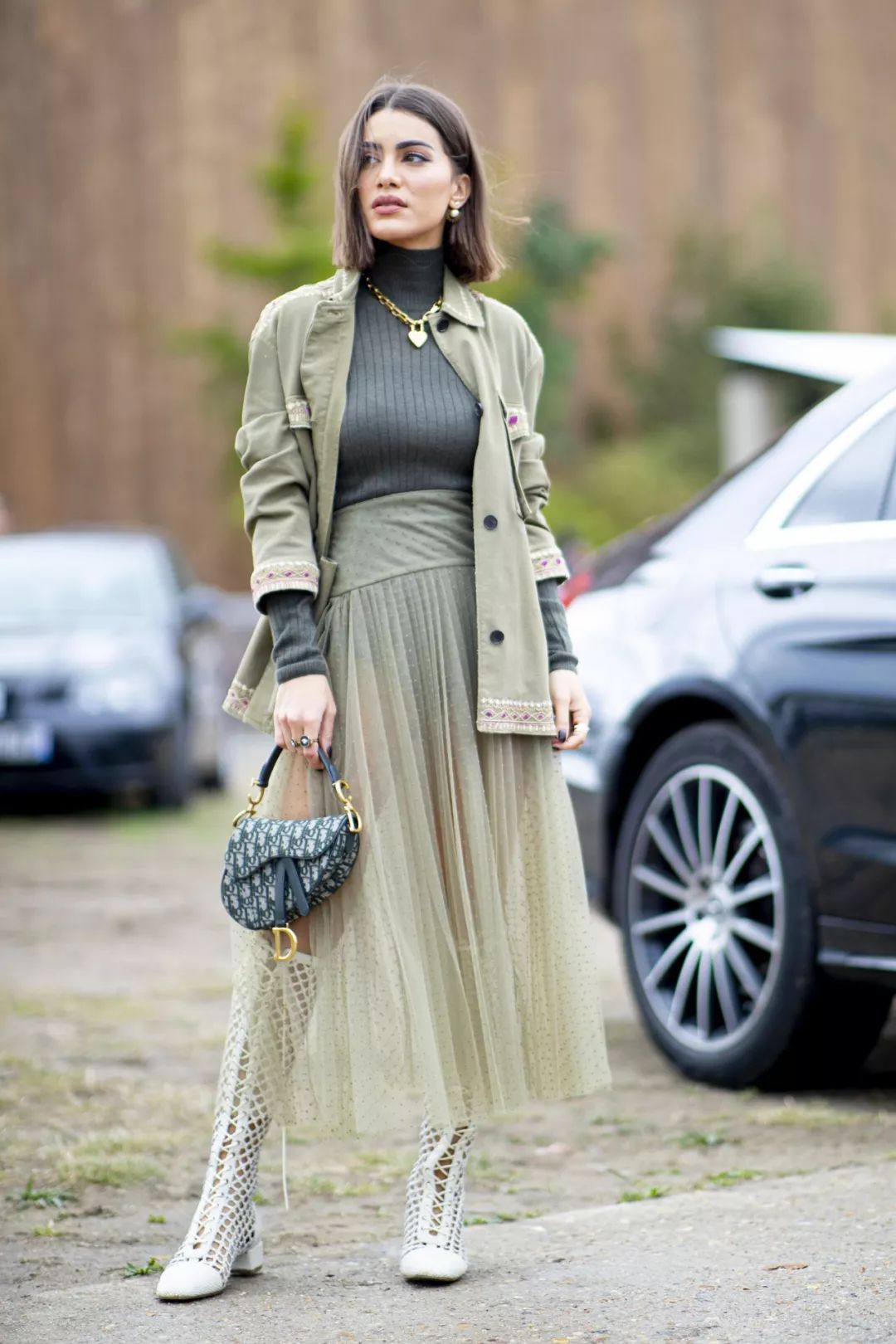 时髦精就是喜欢与众不同,乐于创新,即便是没有袜靴,也可以制造属于袜靴的感觉,用短靴搭配长袜,属于“露袜”的时髦,还可以打造层次感。