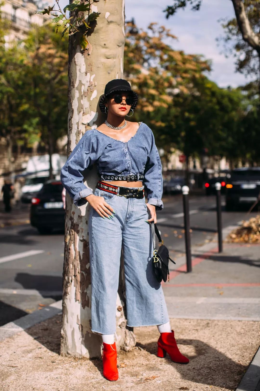 偶尔来点新鲜的,也很有趣。比如上衣和裤装都是蓝色,搭配一双嘉年华红色短靴,视线瞬间便有了聚焦点,整个形象都变得愈发鲜明个性。