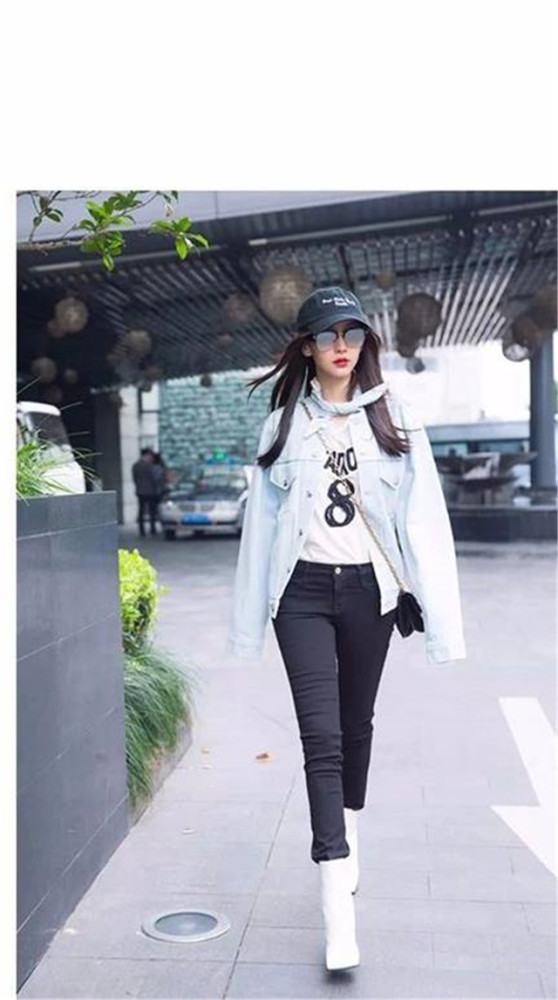 小白靴的时尚度也是得到大众的认可了的,许多女明星都纷纷的穿上了小白靴,这不,杨颖脚上的这双小白靴就是今年的爆款单品。窄窄的靴身,尖尖的靴头,搭配一条显瘦的小黑裤,立马让她的身高变成了170的既视感,再搭配一件短款外套,时尚又轻松!