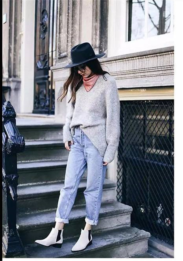 切尔西靴也是一双两面性的靴子,既能够展现出女性的温柔感,也能够展现出女性刚强硬朗的一面,作为切尔西靴的忠实拥护者,我最推荐大家的穿搭组合就是切尔西靴和牛仔裤,牛仔裤的休闲轻松和切尔西靴的大气干练组合在一起,谁穿谁时髦!