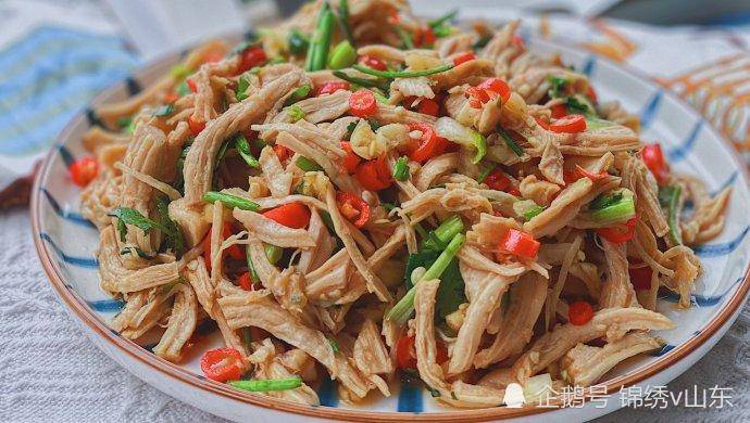 (1)鸡胸肉洗净切丝,小葱剥皮切段,蒜瓣剥皮切末,生姜去皮切片,红辣椒切段。