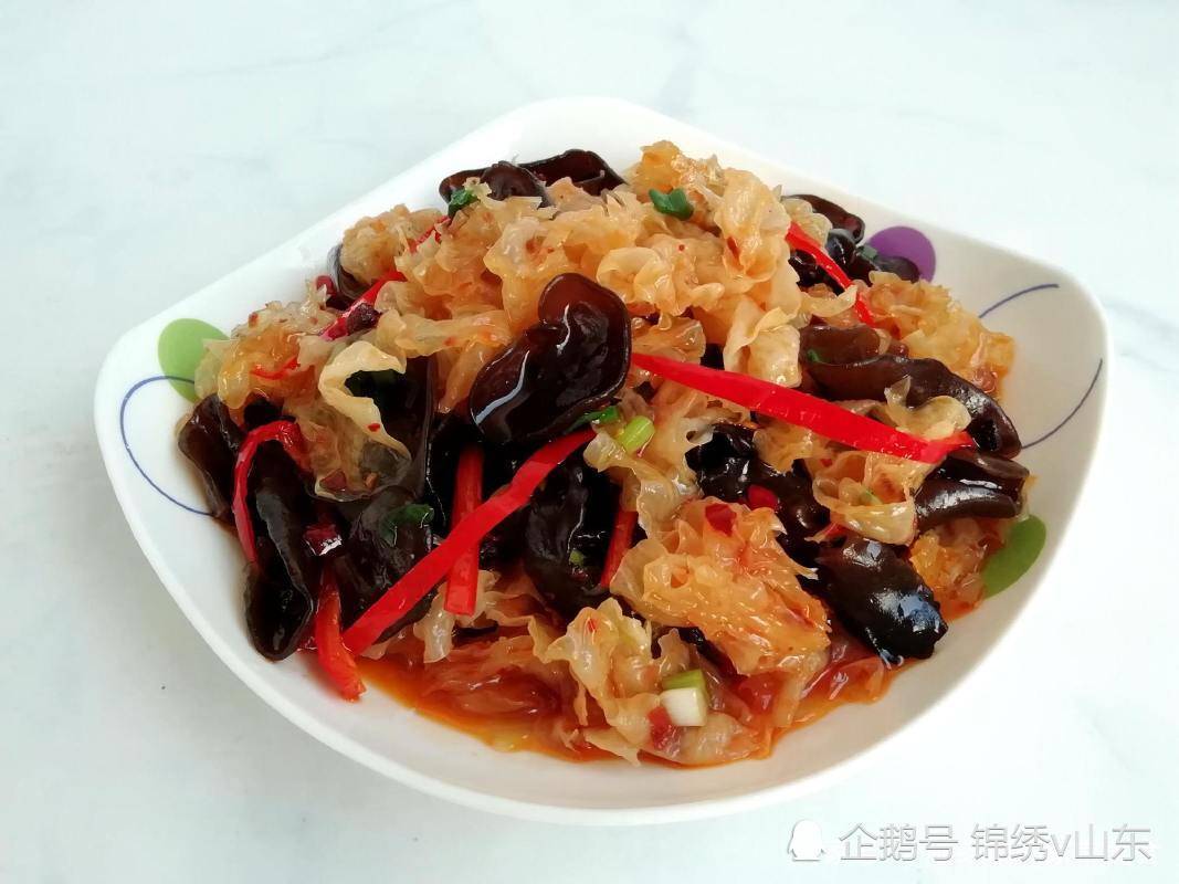 2、起锅烧水,放点食盐,水开后把双耳下锅,翻动几下,焯水2分钟,捞出控水过凉,控干水分以后备用。