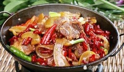 3、锅里放色拉油烧热,投入蒜瓣和红小米椒节煸香后,再放入乳牛片、杏鲍菇片和香菜梗,翻炒的同时加入盐、味精、辣鲜露和青花椒面,淋入香油便装入干锅,上桌前点缀香菜叶便好。