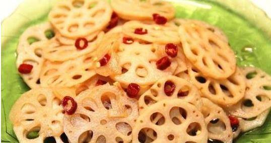 食材:莲藕1节;干辣椒;糖1大勺约15克;陈醋;香油数滴 做法: 1、先将莲藕切片,越薄越好,切好的藕片需要泡在水中,水中滴几滴醋,防止氧化变黑,将干辣椒切小段,倒入2大勺开水,泡软,这样辣味比较容易渗出,如果怕辣可以少放一点辣椒。 2、烧一锅开水,将切好的藕片入开水锅中汆烫1-2分钟,不要太久,因为要保留藕脆脆的口感。如果切的太厚的话,就焯的久一点。