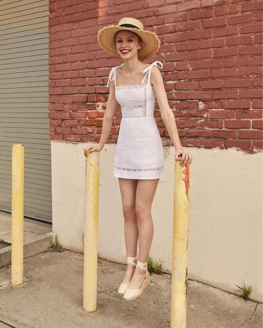 大面积的蕾丝裙,平心而论并不太容易穿出质感来,所以日常穿搭M姐更推荐这种带有零星蕾丝、镂空元素拼接的小白裙款,来营造出一种恰到好处的精致感。