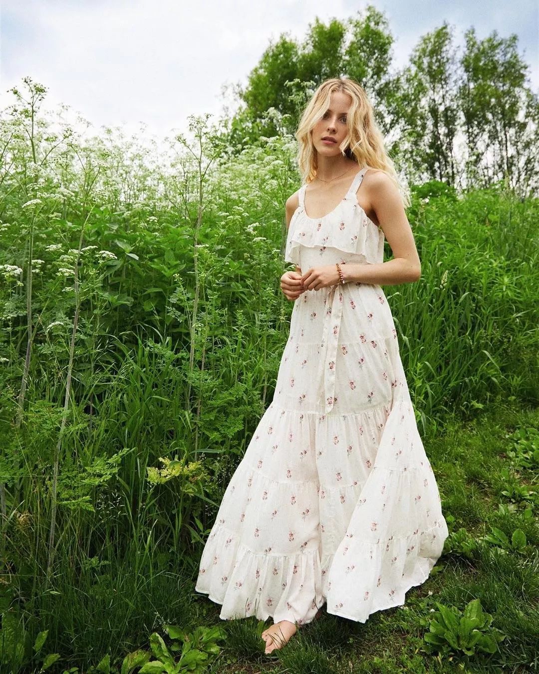 想要将白色印花裙穿出质感来,印花图案也应选择比较清新素净的样式。