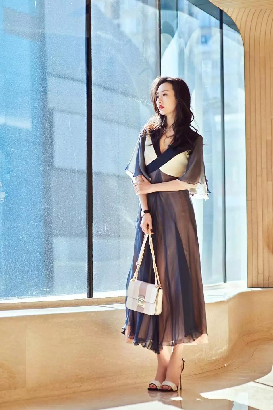 夏天清晨的阳光打在小姐姐的脸上,让她散发出一种青春般的温柔!她身上穿着一件v领的连衣裙,拼色的设计带着时尚的感觉,优雅的裙摆,带有薄纱的设计让她看起来更加的仙气,脚上搭配着一双一字带的高跟凉鞋,让它凸显出一种女神般的气息。