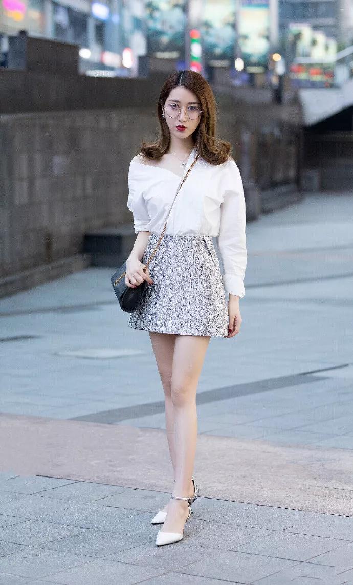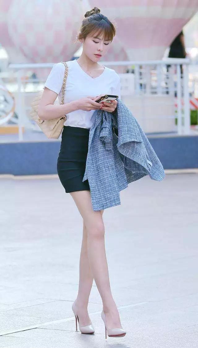 由于夏天的炎热,相信很多人在出街的时候都会为自己加上一个丸子头,看上去既显年轻,又带着妻子。小姐姐身上穿着一件白色的v领上衣,带着一种简约的时尚,下半身搭配着一条黑色的包臀裙,经典的黑白搭配,带着一种优雅的气息,小衫搭配着一双尖头的高跟鞋,裸色的色调更亲肤,让她的双腿也看上去更加的修长。