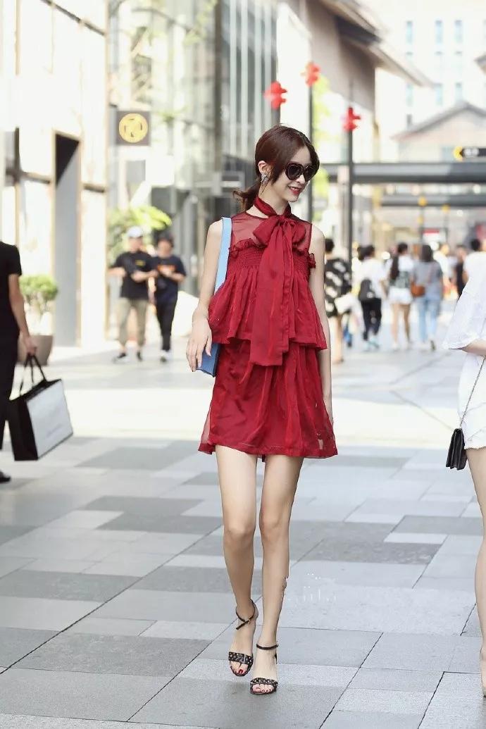 走在夏日的街头,一抹亮丽的红色,绝对能够让你轻松地脱颖而出。小姐姐身上穿着一件红色的无袖连衣裙,蛋糕裙的设计显得飘逸又时尚。优雅的绑带系在颈部带着一种魅力与时尚脚上搭配一双气质的椅子带高跟鞋显高显瘦又带着魅力。