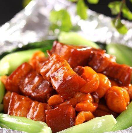 『配料』 五花肉,板栗,姜,桂皮,酱油,冰糖,八角,香叶,甘草,盐, 做法步骤 1、准备好主要原料,板栗、五花肉洗净切成2.5厘米见方的块,姜切片。 2、烧锅开水,加入点盐,将新鲜板栗下入,煮上五分钟。 再将煮好的板栗倒入冷水中, 泡上十分钟。这样就很容易的将板栗壳都剥下来。 3、切好的五花肉焯水,捞出备用。 4、锅烧热,放入焯过水的五花肉 ,小火煎至五花肉出油,稍稍变色。加入冰糖继续翻炒。 5、五花肉翻炒上色后加入葱段、姜片、八角、桂皮、甘草、冰糖 等调料 煸炒出香味儿,至冰糖融化。 6、加入适量的老抽调色。加入适量开水没过五花肉,加入料酒,大火烧沸,改小火炖40分钟。 6、小火炖40分钟后,汤汁减少,加入板栗,加入食盐调味儿。 7、加入板栗和食盐后,继续煮15分钟,板栗入味,绵软即可