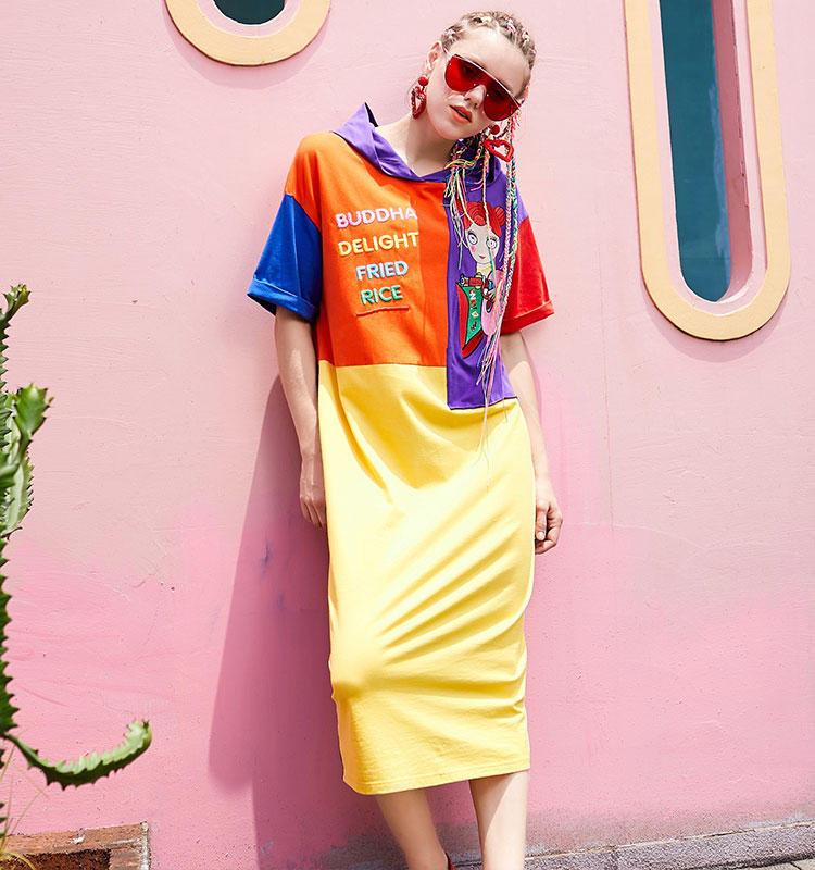色块拼接是一种很高阶的玩法,高玩会搭出非常有趣的搭配,很多女孩子都喜欢花花绿绿的裙子,但是过于多的花色拼在一起会显得很花哨,穿不好就是“村姑”,可以从头到尾就穿同一种颜色的,使上下身形成连贯性。