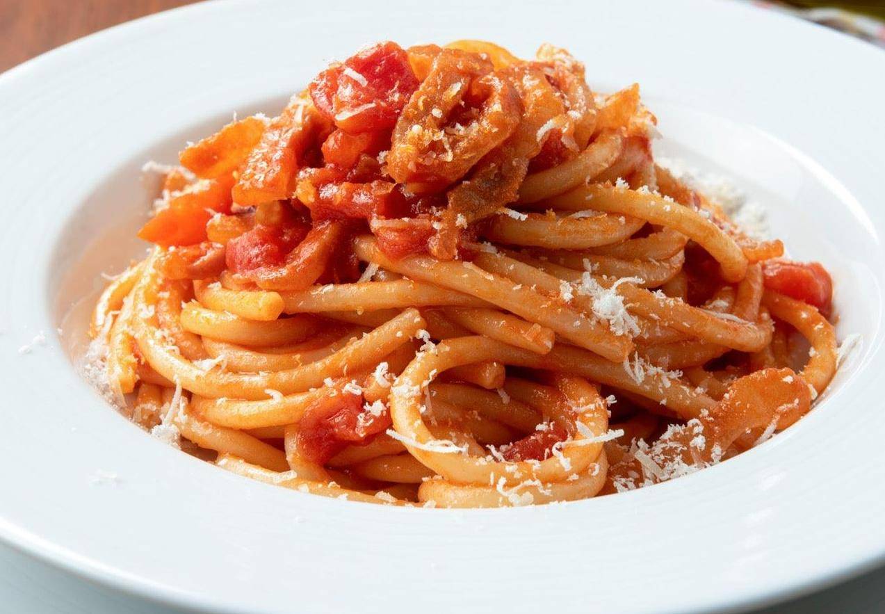 做辣味番茄培根意面(Amatriciana),必须用吸管面(Bucatini)。
