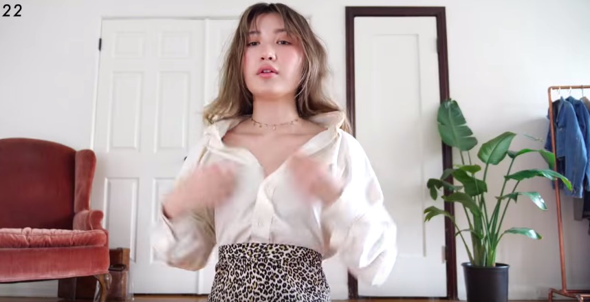 如果你的裙子是大v形领,可以试试在里面搭配一件有领子的上衣。