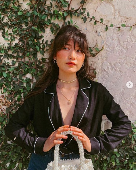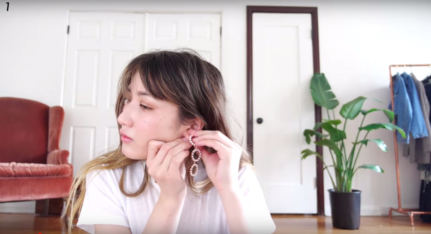再搭配一对夸张的珍珠耳环,一双珍珠凉鞋
