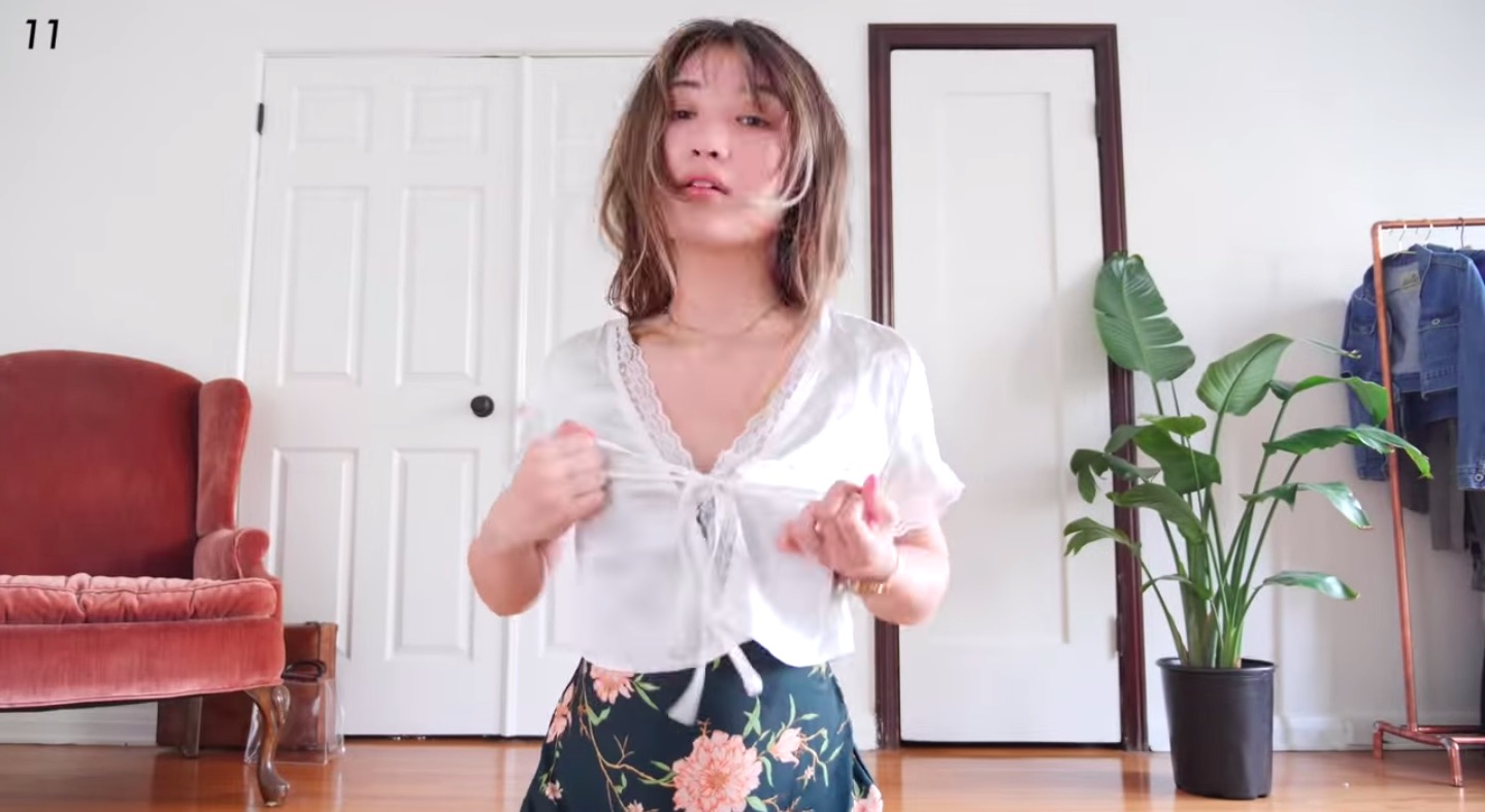 当然,你也可以把薄吊带裙改造成半身裙,只要套件T恤就OK。