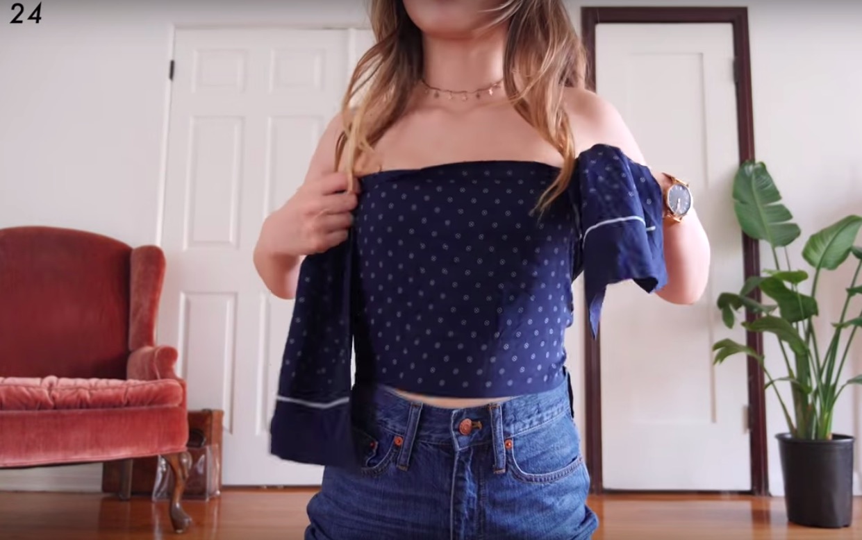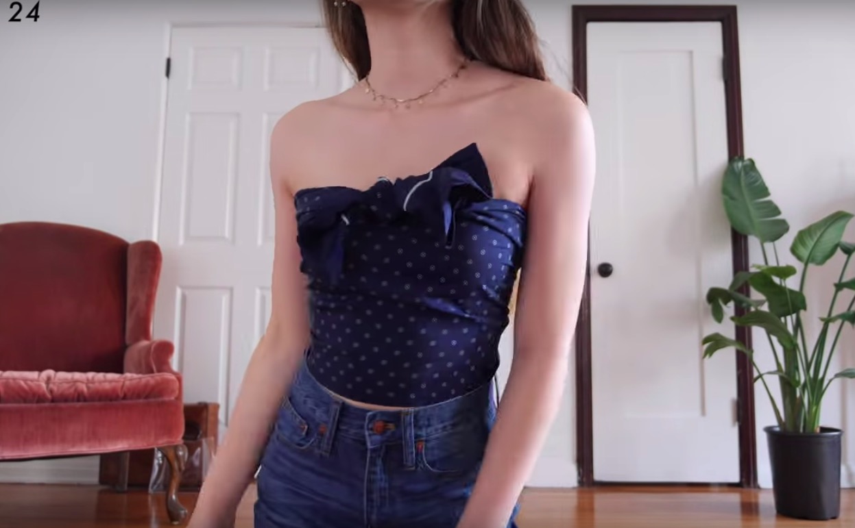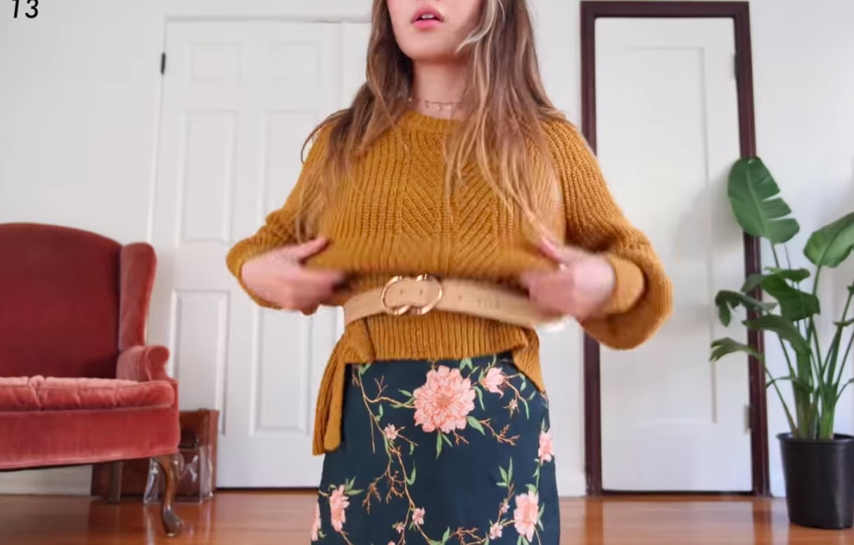 裙子领口有装饰物也不怕,套上一件宽松的露脐毛衣,谁还看得出来?
