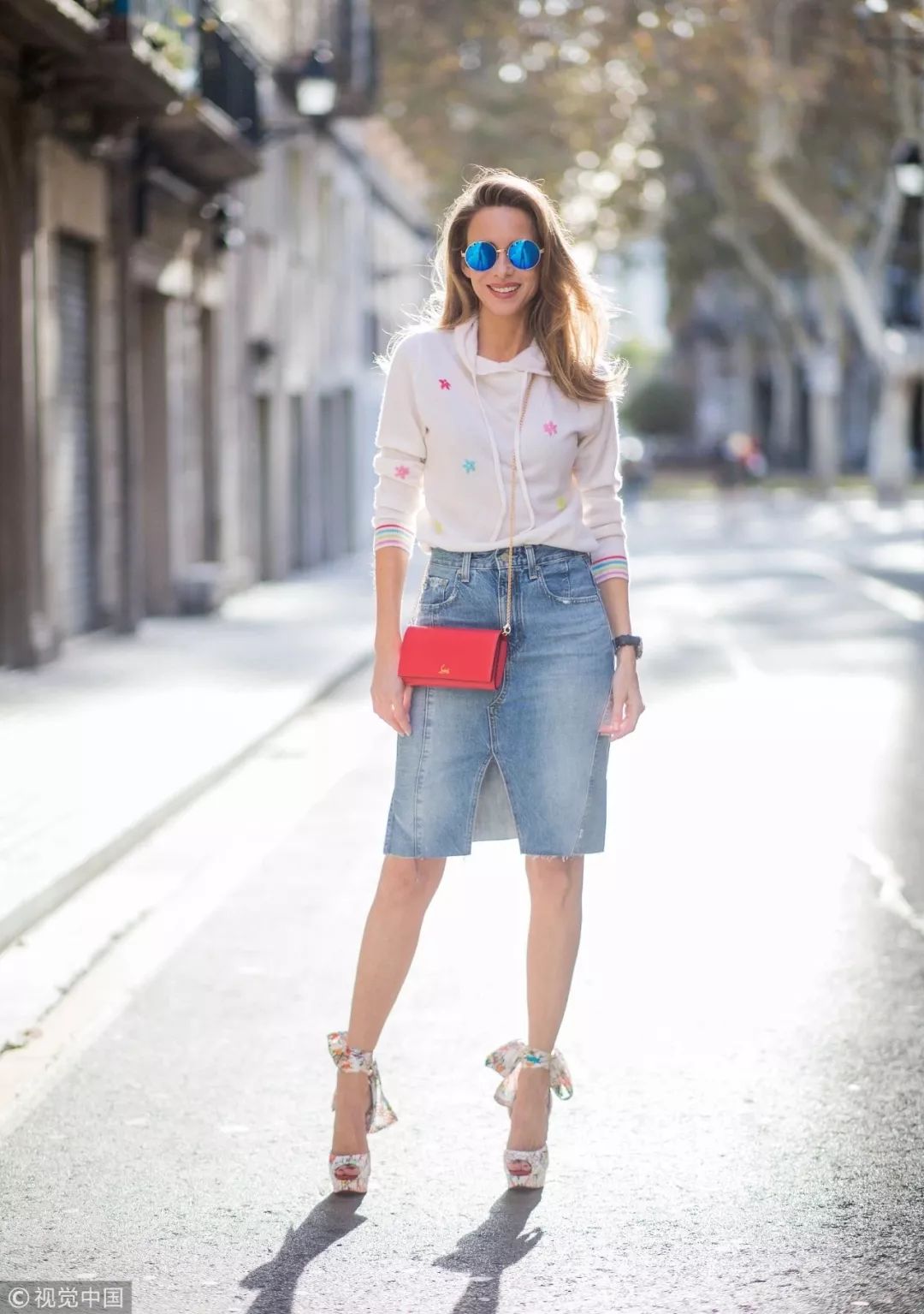 在外面加上一件防晒的牛仔外套也是好看又百搭。
