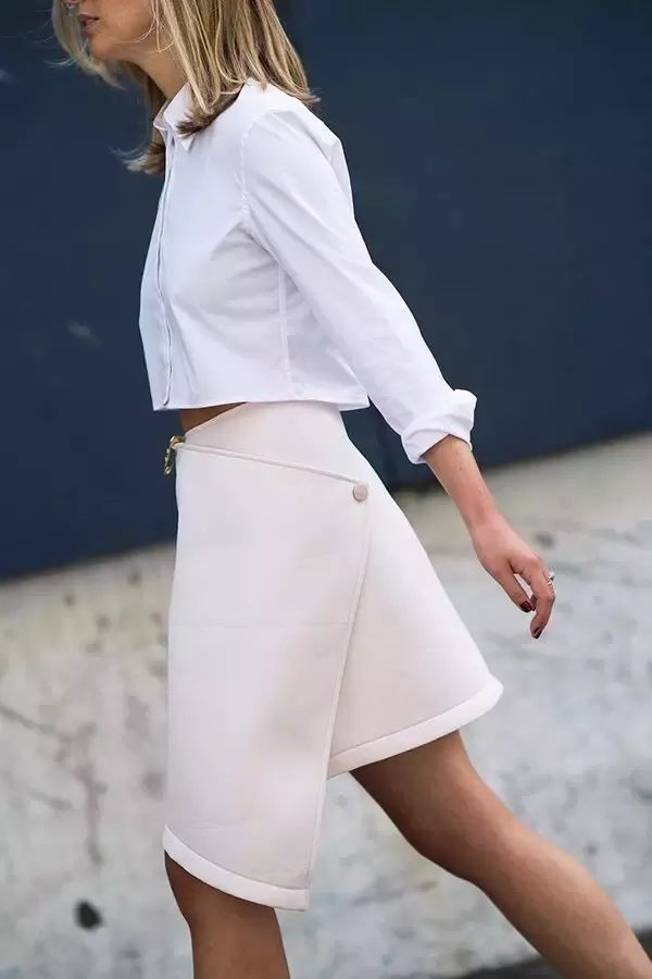 高腰裙配上白色衬衫是好看度最MAX的!