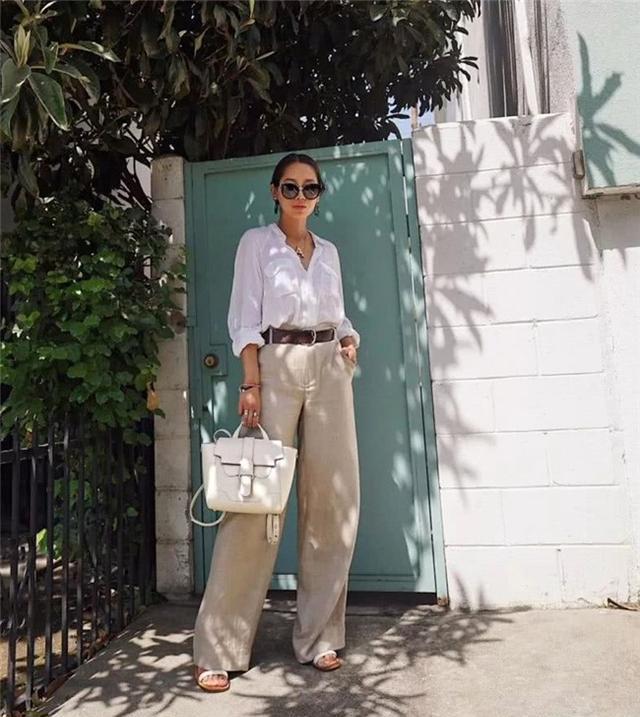 清新迷人的浅蓝色,搭配白色拖地的阔腿裤,怎么穿都很好看,你不试试吗?