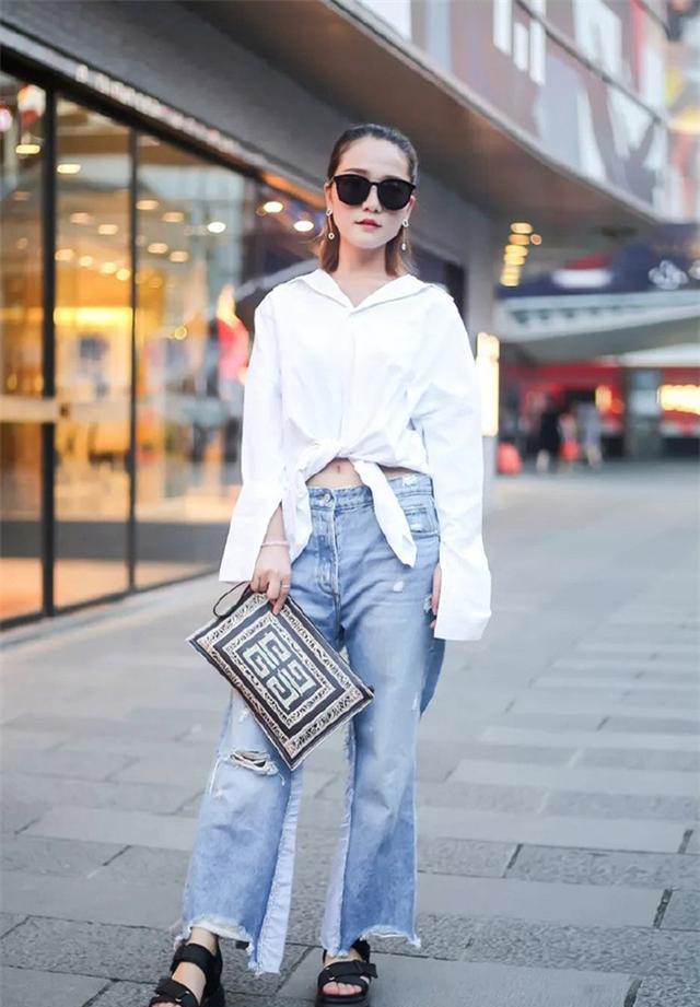 想把基础款的白衬衫穿出个性感,学会在衣摆出打个结,这样子还能偷偷“炫腹”呢。