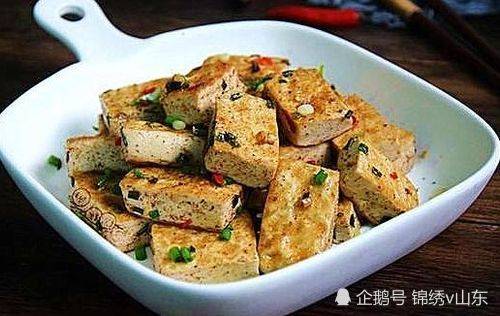 原料:豆腐250克、红辣椒1个、青辣椒1个、香葱1棵、大蒜6瓣、食用油250克、黑胡椒粉小匙、花椒盐小匙、精盐1小匙、味精小匙