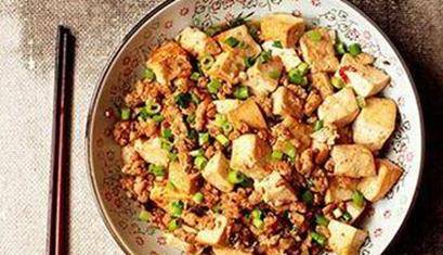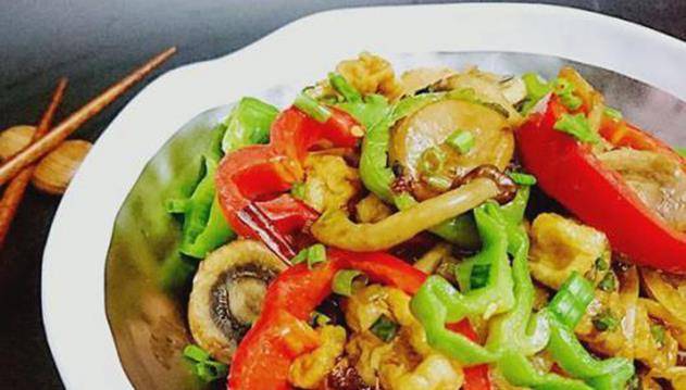 食材:北豆腐1盒、鲜香菇4朵、胡萝卜1根、尖椒1根。橄榄油4汤匙(60ml)、豆豉辣酱2汤匙(30克)