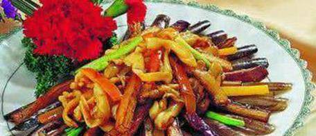5.起油锅,烧六成热,放茄子进去炸,小心翻动,茄皮微焦,铲起。