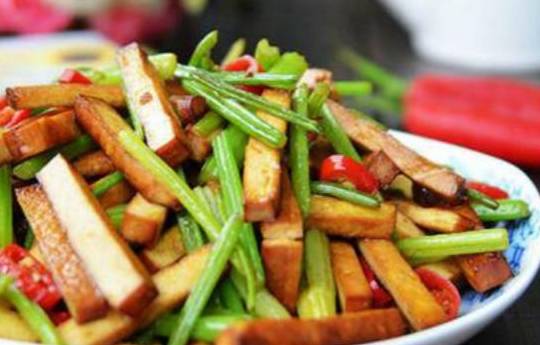 对于人们普遍偏胖的今天来说,芹菜显然是一种十分符合健康饮食的蔬菜。我们知道芹菜本身就是一种十分有效的抗氧化剂,能够降低血压、软化血管,而且营养也很丰富,算的上是一种老少皆宜的蔬菜。香干的话,其实就是就是我们常吃的五香豆干,豆制品的营养这里就不用多说了吧!做这道菜的话其实很简单,芹菜提前去掉叶子,然后切成段,香干切成条。锅中倒入适量的油,油热后下入蒜片、姜丝和葱丝,同时下入香干炒出香味。最后再下入芹菜和调料,大火翻炒上半分钟左右,就可以出锅了!