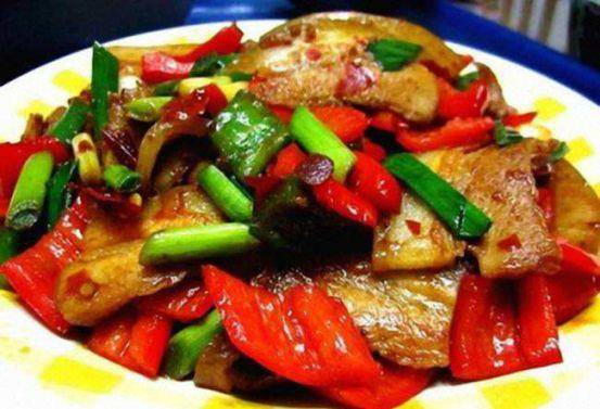 2、锅内入油烧热,小火将豆腐煎成两片金黄色捞出待用