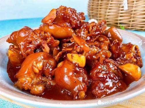 食材:猪蹄、腐乳、油、盐、腐乳汁、冰糖、姜、葱、八角、生抽、老抽、料酒、鸡精