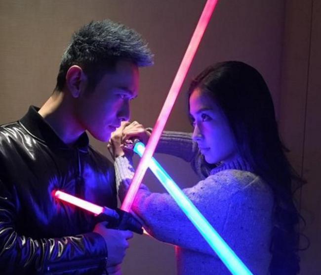 1月26日下午,黄晓明微博晒出一张与Angelababy的合影,照片中两人拿着一红一蓝两把激光剑,怒瞪对方上演眼神杀,做出准备“决斗”的样子。黄晓明还为图片配文道:“你穿不穿秋裤?不穿信不信哥削你!”花式关心b ...