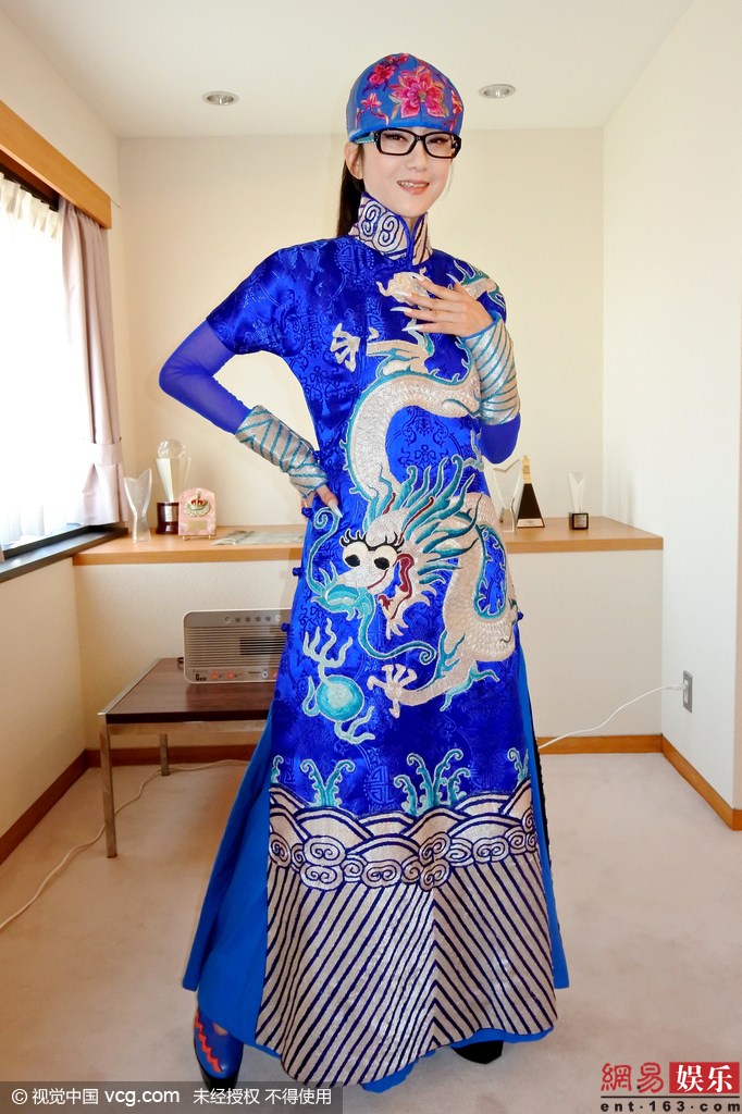 2月20日报道 2月19日,杨丽萍在日本东京接受媒体采访,为公演的《云南映像》做宣传。身穿蓝色中式装,白龙图案十分抢眼。