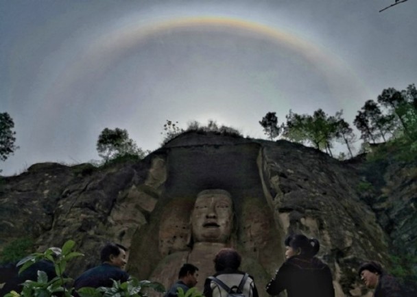 东网 位于四川资阳市的世界第三大坐佛“半月山大佛”,向来是旅客游四川必到景点之一。资阳市周日(16日)上午雨后初晴,天空出现一度五彩日晕,位置更刚好出现在半月山大佛的上方,这幕“佛光初现” ...
