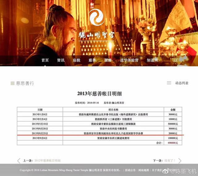 周蓬安:“资助副局长之子赴美留学”是封公开举报信6月13日,观察者网《资助副局长儿子赴美留学?这慈善公开到底怎么回事》一文报道,今天,网友(@也要楚天阔)在微博上发了两张骊山明圣宫的慈善账目明细,并称:“ ...