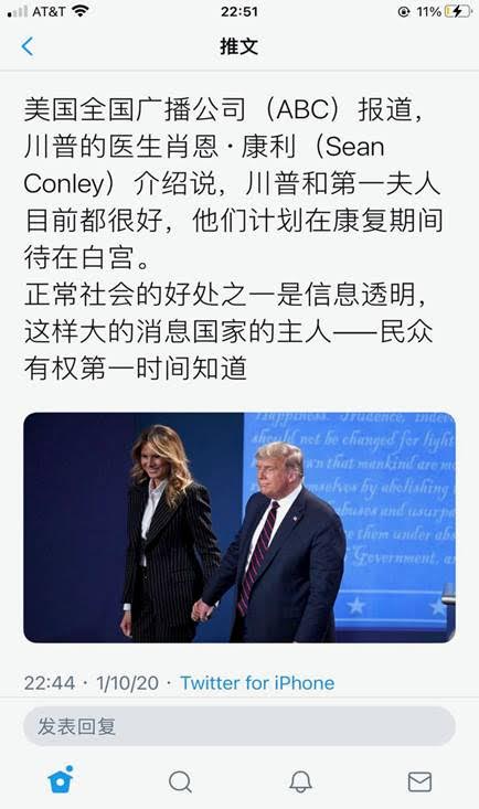 本帖最后由 徐文立 于 2020-10-2 06:01 编辑 正常社会这样重大消息国家主人——民众有权第一时间知道1)德國之聲:特朗普夫妇确诊感染新冠病毒 造势活动取消 https://www.dw.com/zh/特朗普夫妇确诊感染新 ...