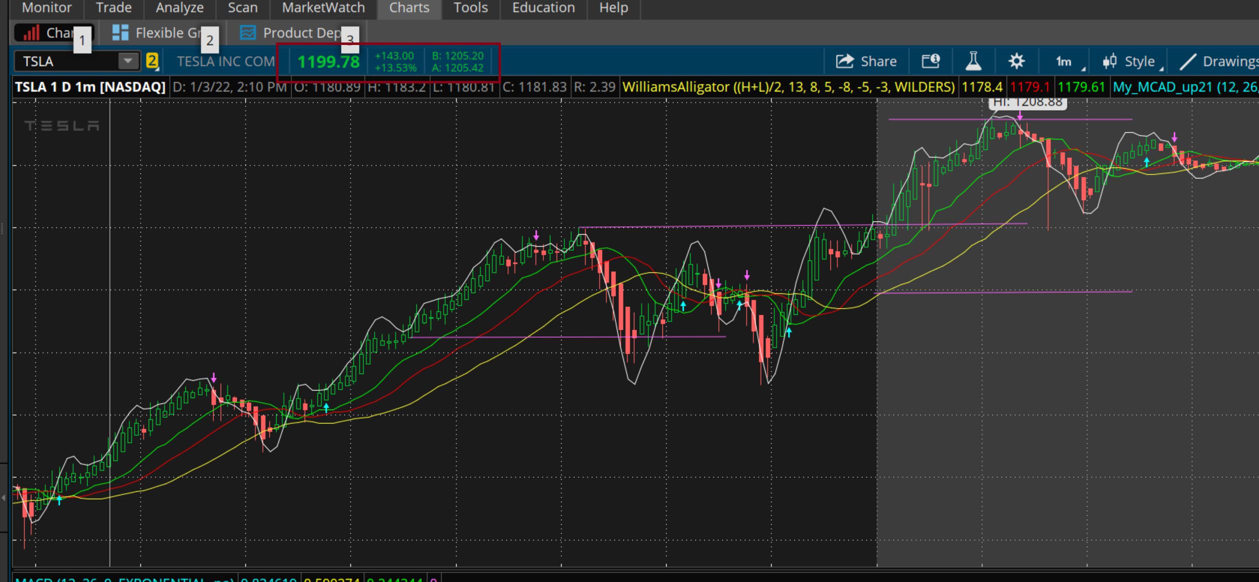Tesla stock has increased 13.53% by $143.