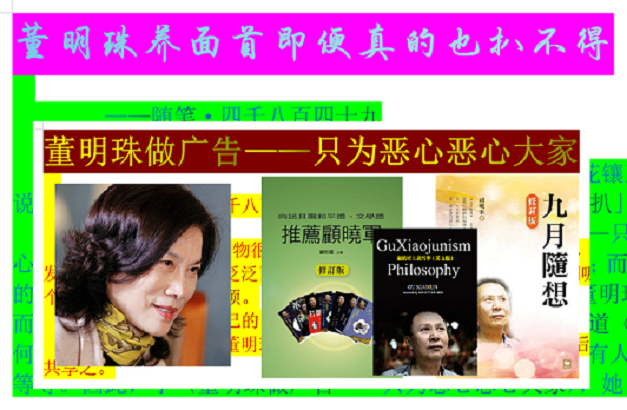 董明珠养面首即便真的也扒不得 ——随笔·四千八百四十九 斗胆发了〈董明珠做广告——只为恶心恶心大家〉,花镶玉道「听说董大姐养着一堆面首,真的假的呀?您要知道给咱扒一扒」。 哈哈,花 ...