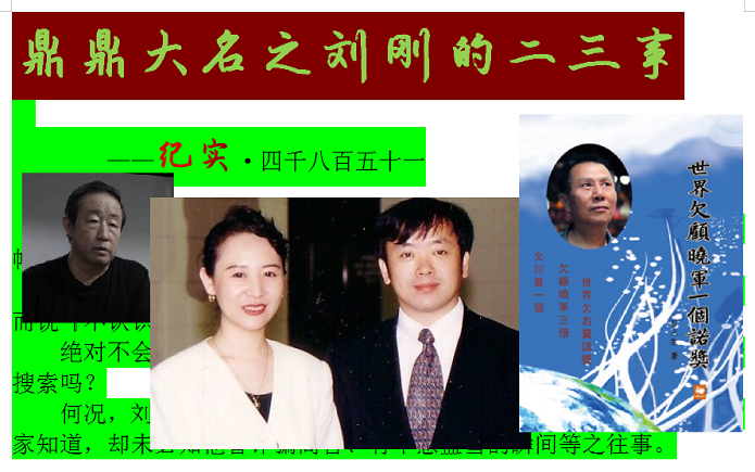 本帖最后由 顾晓军 于 2023-2-11 15:52 编辑 鼎鼎大名之刘刚的二三事 ——纪实·四千八百五十一 在〈刘刚怀念顾晓军,我认识胡耀邦的儿子〉文下,一网络垃圾跟帖,「刘刚是谁,不认识」。 ...