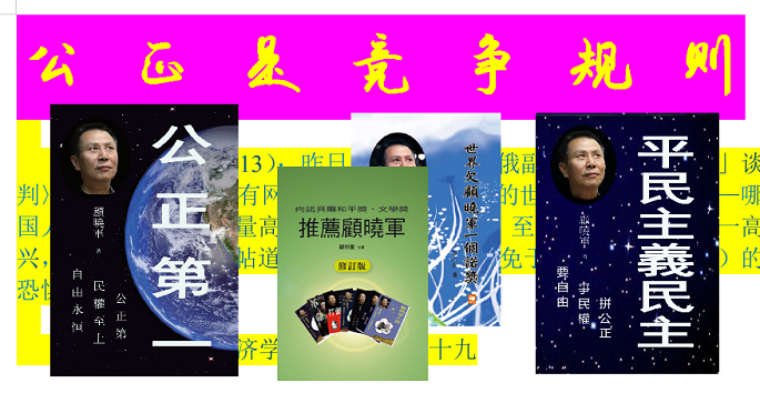 本帖最后由 顾晓军 于 2023-2-13 04:41 编辑 公正是竞争规则 重发按(2023-2-13):昨日的〈顾晓军谈俄副外长的「无条件」谈判〉在一网站火了,有网友盘桓跟帖「『今后的世界,就应该比——哪国人民幸 ...