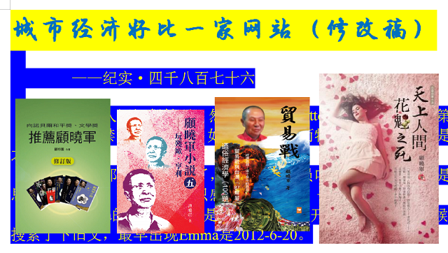 本帖最后由 顾晓军 于 2023-3-5 18:38 编辑 城市经济好比一家网站(修改稿) ——纪实·四千八百七十六 许,没有人还记得她了。然,她当是Twitter因技术而封禁的第一人(Twitter的封禁,多为言论, ...