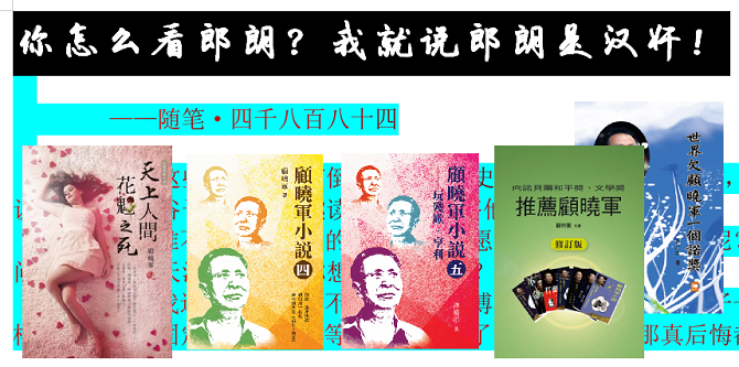你怎么看郎朗?我就说郎朗是汉奸! ——随笔·四千八百八十四 写了篇〈这些年,我「打倒鲁迅」的历史〉,居然人上来打击我,说「陈芝麻烂谷子,谁有兴趣读」。我便回答他「我有兴趣呀」。 其实,有 ...