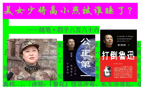 本帖最后由 顾晓军 于 2023-9-16 20:47 编辑 美女少將高小燕被誰睡了? ——隨筆·四千八百八十六 很有意思。有人覺得,我的文章是為他而寫,還時不時地來我博客上點菜——要寫這個,不要寫那個… ...